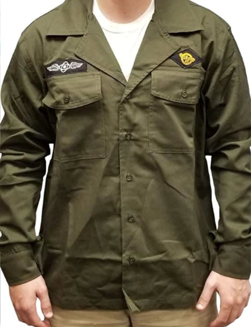 Get the Charlie Day Green Military Jacket from Abbott Elementary Season 04. Made from durable cotton fabric, this jacket features a stylish military design with a buttoned closure and shirt-style collar, perfect for any fan of the show.