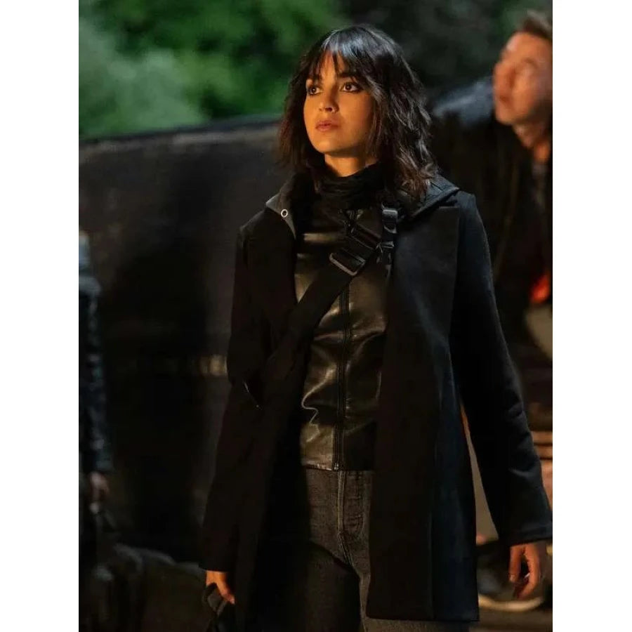 Elevate your outerwear game with the "Abigail Melissa Barrera Black Coat," a timeless piece inspired by the elegance and sophistication of Melissa Barrera's style. Crafted from high-quality materials, this coat exudes understated luxury and versatility. The classic black hue adds a touch of refinement, while the tailored silhouette ensures a flattering fit that complements any ensemble. Whether you're heading to a formal event or a casual outing, this coat is sure to make a chic statement. The "Abigail Melissa Barrera Black Coat" features impeccable detailing, including a sleek lapel collar, a single-breasted front, and practical side pockets. Its versatile design allows for effortless layering, making it suitable for various occasions and seasons. Pair it with a dress for a polished look or wear it over jeans and a sweater for a more relaxed ensemble. Embrace the timeless sophistication of Melissa Barrera's style and make a lasting impression with this exquisite black coat.Specifications: