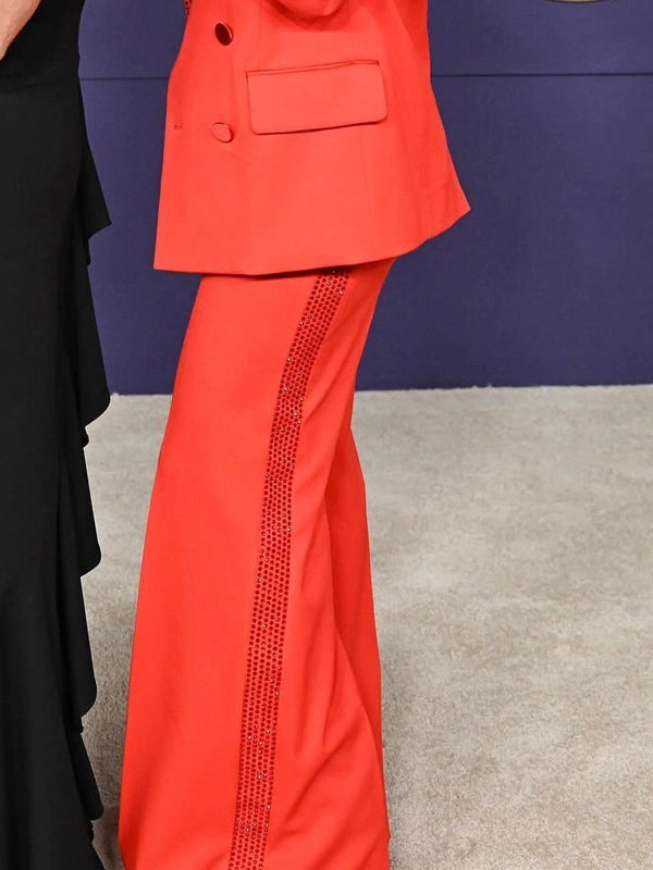 Turn heads with the "ACM Awards 2024 Lainey Wilson Red Suit," inspired by Lainey Wilson’s striking appearance at the ACM Awards. This suit embodies bold elegance, combining vibrant color with sophisticated design. Crafted from high-quality materials, it offers a perfect blend of comfort and luxury, making it an essential piece for fashion-forward individuals. The suit features a tailored fit with a sleek blazer and matching trousers, creating a powerful and polished silhouette. Its eye-catching red color and exquisite detailing make it ideal for formal events, red carpet appearances, or any occasion where you want to stand out. The "ACM Awards 2024 Lainey Wilson Red Suit" is your go-to choice for adding a touch of glamour and confidence to your wardrobe, ensuring you make a memorable impression.Blazer