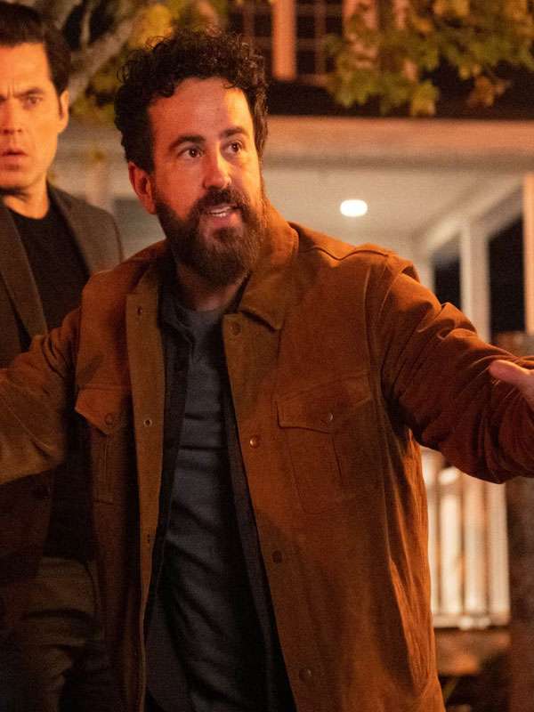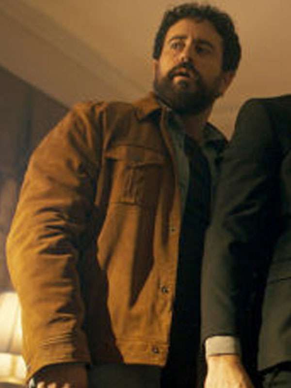 Inspired by Adam Korson's role as Father Phil Orley in SurrealEstate Season 3, this brown suede jacket brings a refined casual look to your outerwear collection. Made from soft suede fabric with a comfortable viscose lining, it features a shirt-style collar and buttoned closure for a classic appeal. With four front pockets and two inside, it offers both style and practicality, making it ideal for everyday wear with a touch of sophistication.
