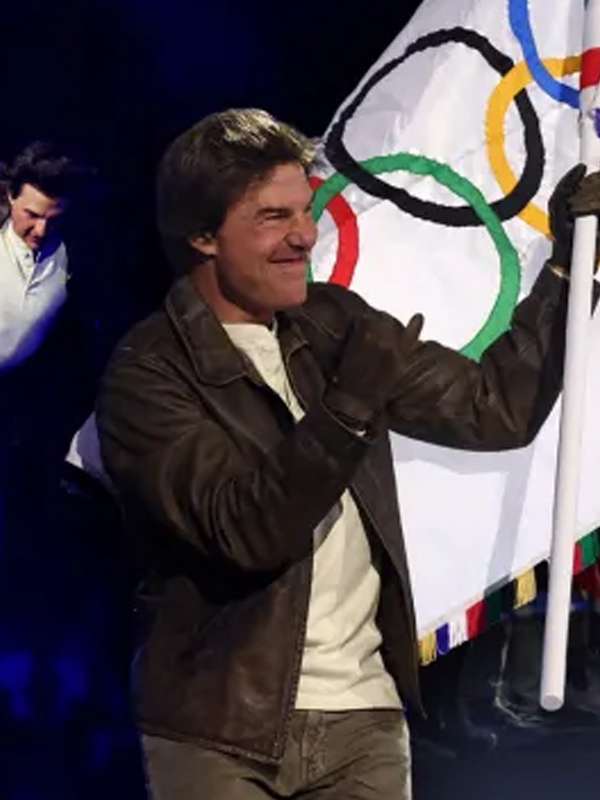 Paris Olympics 2024 Closing Ceremony Tom Cruise Stunt Brown Leather Jacket