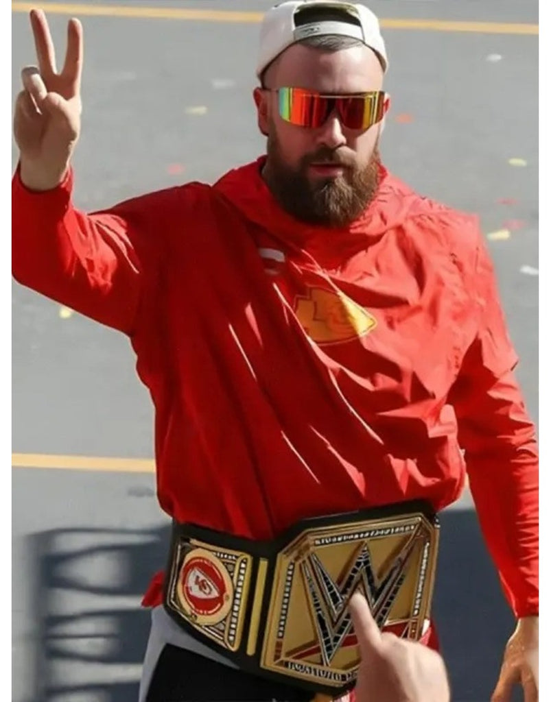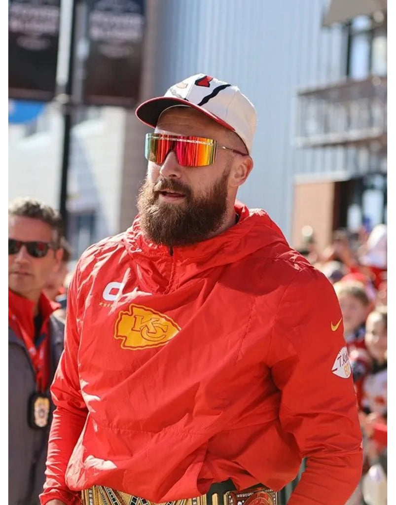 Travis Kelce Super Bowl LVIII Chiefs Victory Parade Red Hoodie