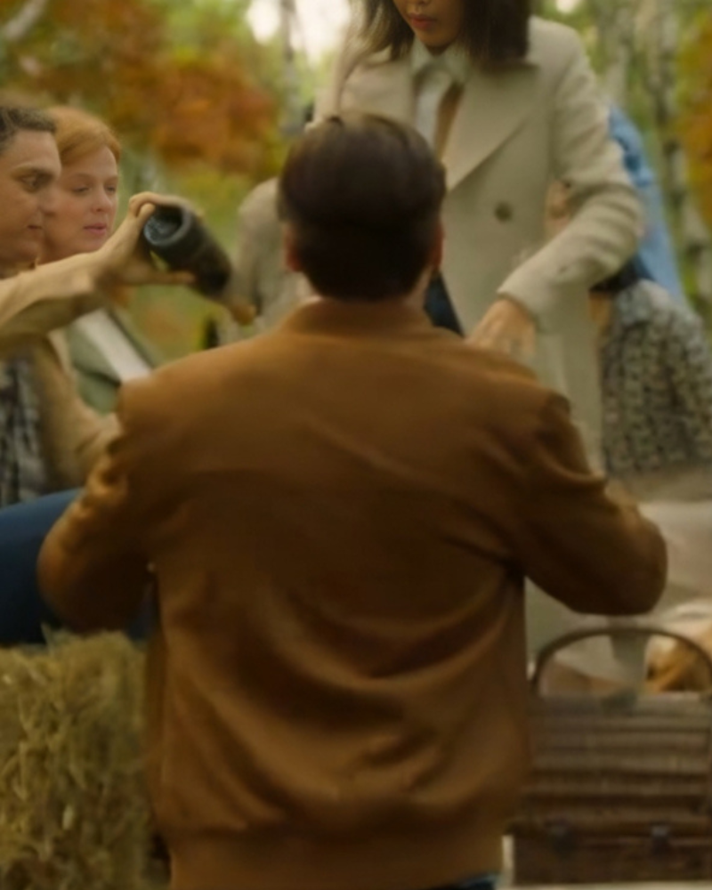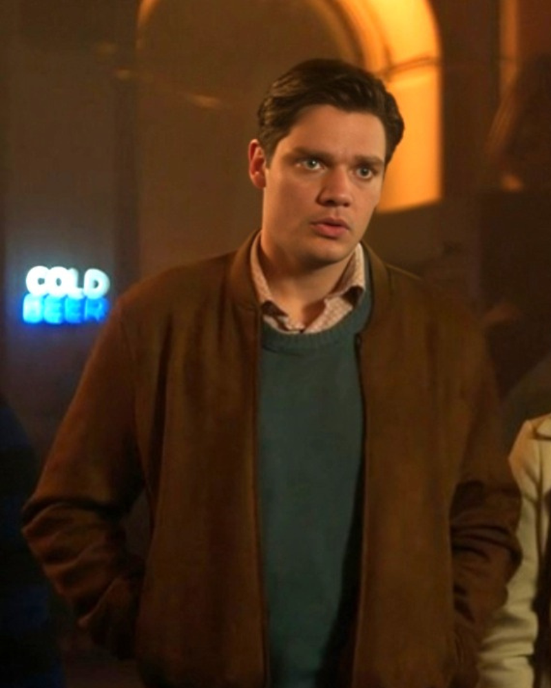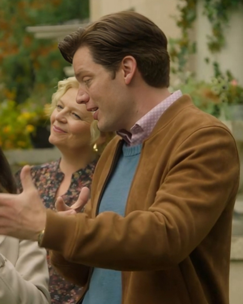 Haunted Wedding 2024 Dominic Sherwood Brown Suede Jacket