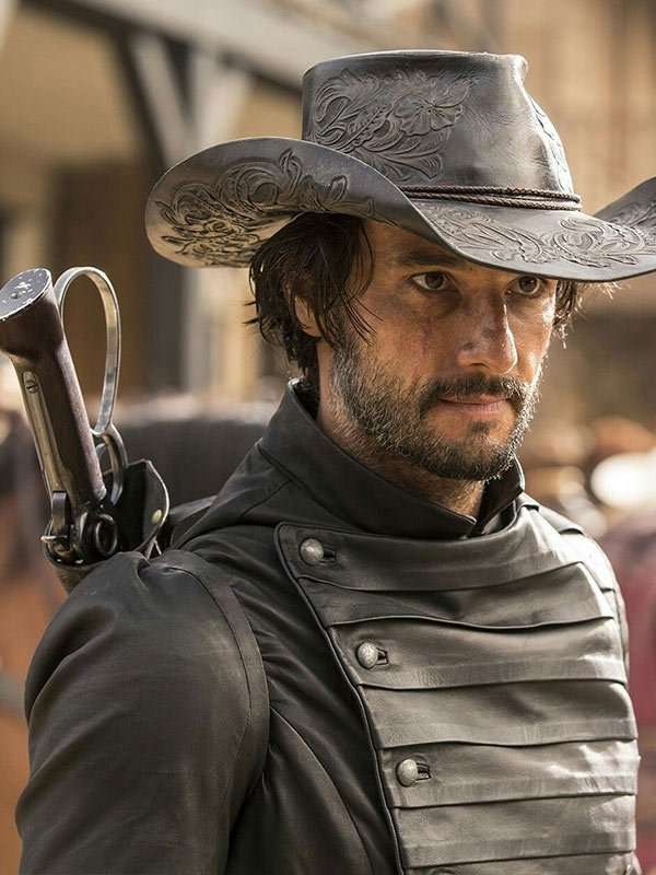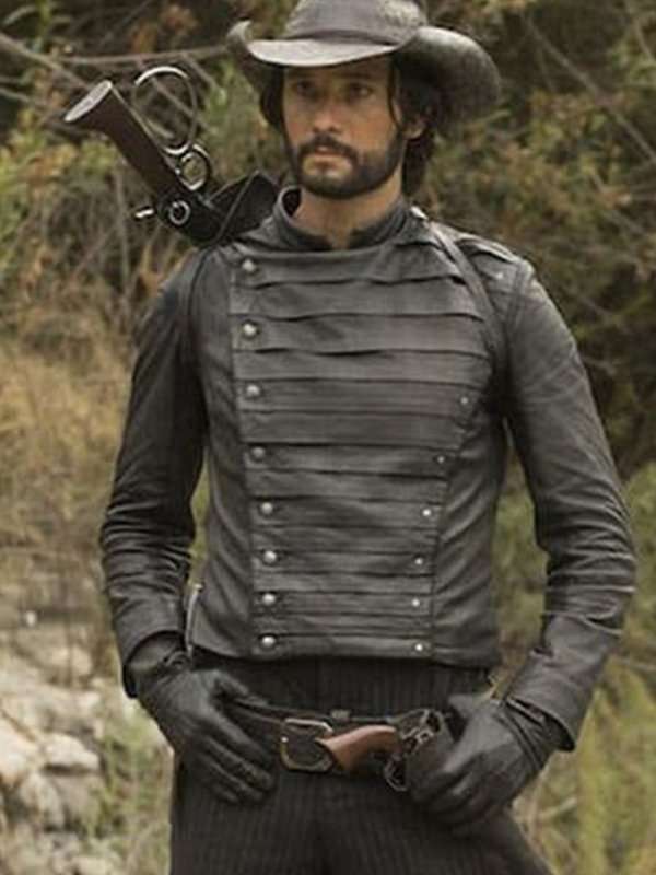 Step into the futuristic landscape of *Westworld* with the black leather jacket inspired by Rodrigo Santoro's character, Hector Escaton.