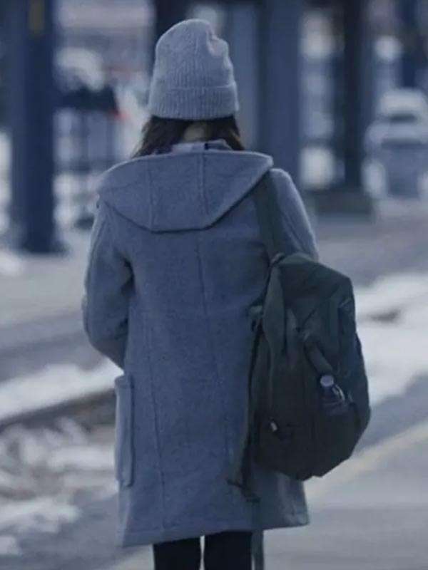 Winter Spring Summer or Fall Jenna Ortega Gray Hooded Coat