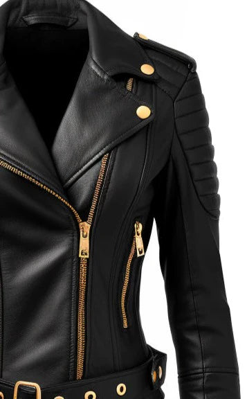 Women Black Quilted Designer Leather Jacket