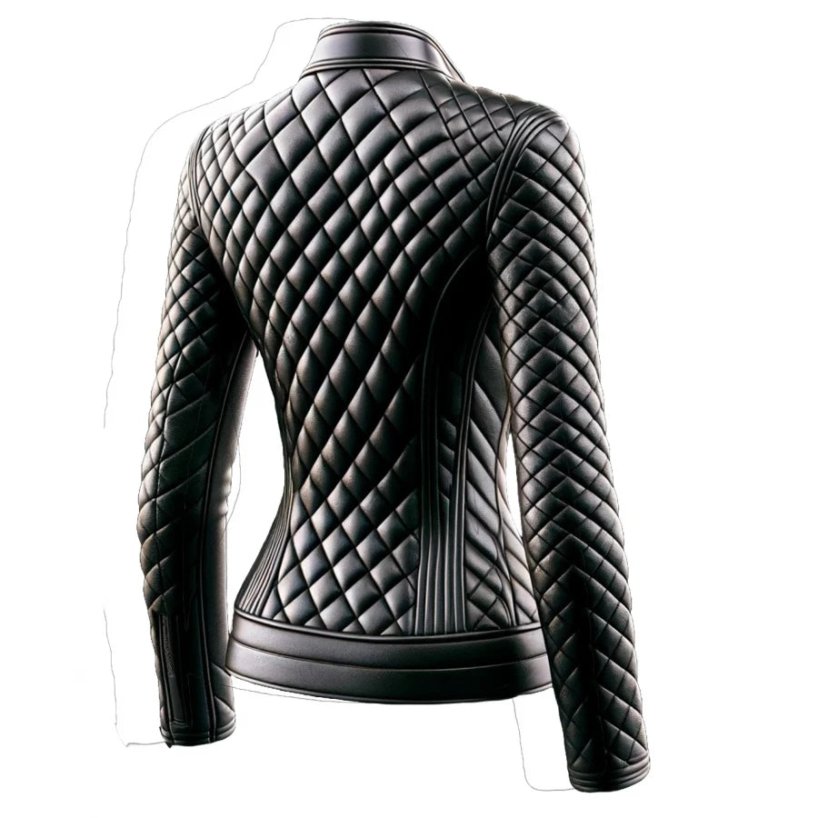 Introducing the Women's Elegant Quilted Black Leather Jacket, a timeless and sophisticated piece for the modern woman. Crafted with meticulous attention to detail, this jacket exudes understated elegance and classic style. Its sleek black leather exterior is complemented by intricate quilted detailing, adding texture and depth to the design. With its tailored fit and refined silhouette, this jacket is perfect for both formal occasions and everyday wear. Elevate your outerwear collection with the Women's Elegant Quilted Black Leather Jacket. Whether you're dressing up for a night out or adding polish to your casual ensemble, this jacket is sure to make a statement. The quilted detailing adds a touch of luxury, while the black leather offers versatility and timeless appeal. Pair it with a dress and heels for a sophisticated look, or style it with jeans and boots for a chic yet effortless vibe. With its impeccable craftsmanship and versatile design, this jacket is a must-have addition to any wardrobe.Specifications:
