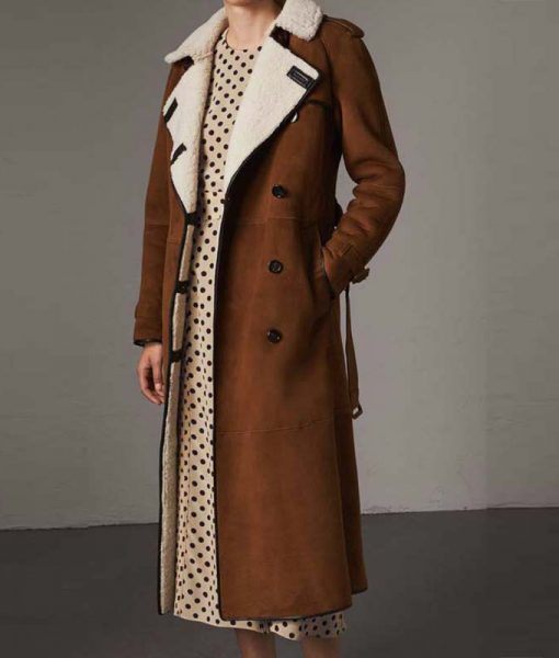 Brown Suede Double Breasted Coat