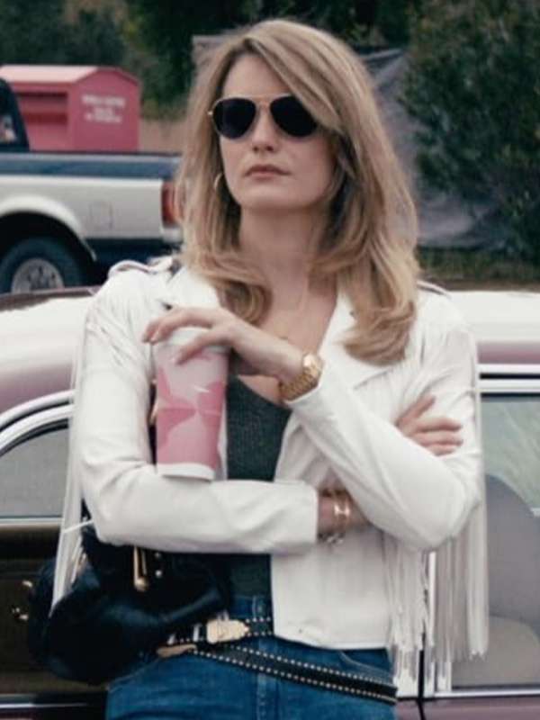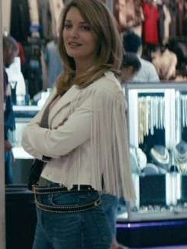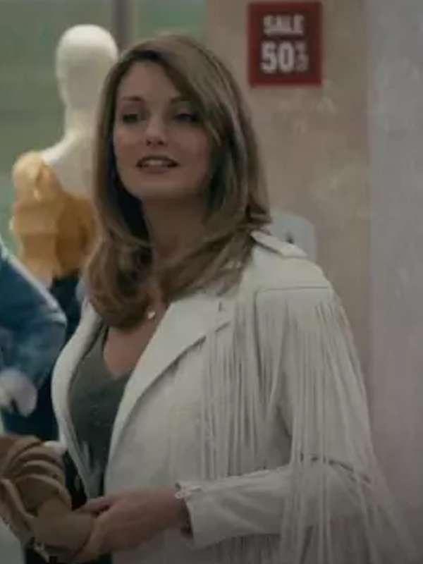 Introducing the Janine Animal Kingdom S06 White Fringe Leather Jacket, inspired by Leila George's striking character. This jacket is made from premium real leather, ensuring both style and durability. The inner lining features soft viscose for comfort. It includes a stylish front zipper closure and a sophisticated lapel collar, making it an eye-catching addition to any outfit. With two front pockets and one inside pocket, it seamlessly blends fashion with functionality. The full-length sleeves enhance the overall elegance of this statement piece.