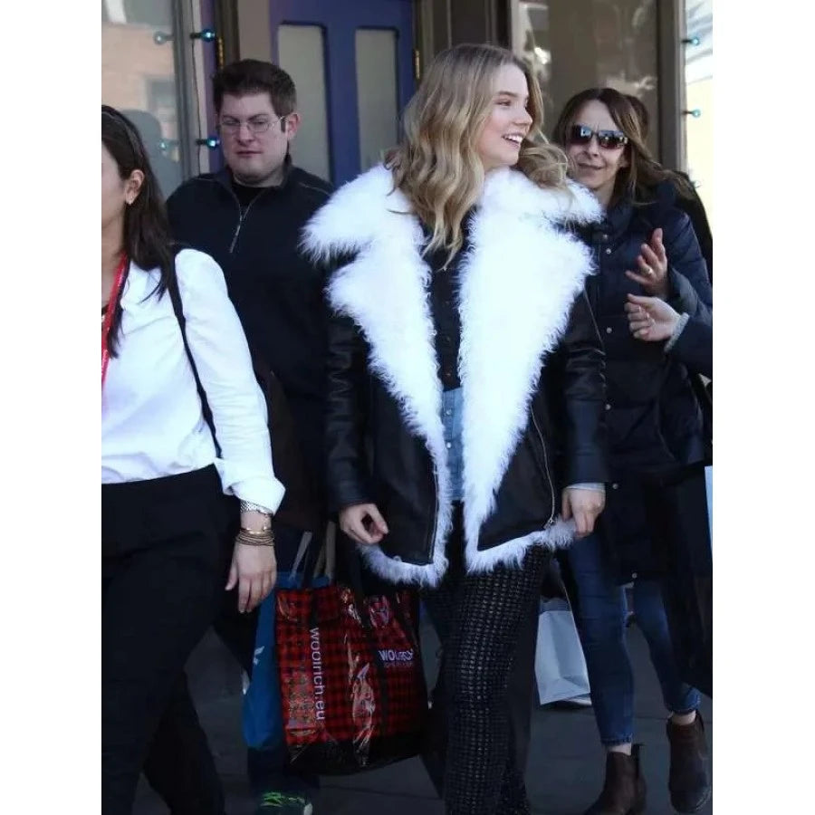 Anya Taylor-Joy Style Shearling Black Leather Jacket
