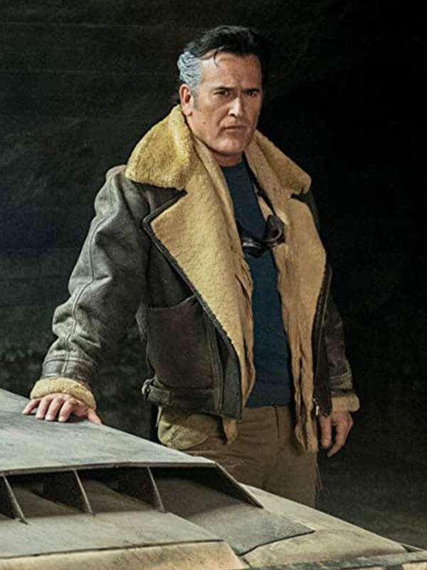 Channel the legendary Ash from "Ash vs Evil Dead" with our Bruce Campbell Shearling Jacket. Crafted with meticulous detail, this jacket pays homage to the fearless demon hunter's iconic style. The premium shearling lining provides warmth and comfort, while the rugged leather exterior exudes rugged charm. Whether you're battling evil forces or simply making a statement, this jacket is your ticket to embodying the spirit of a horror hero. Stand out from the crowd and unleash your inner Ash with this must-have piece of fan merchandise.Specifications: