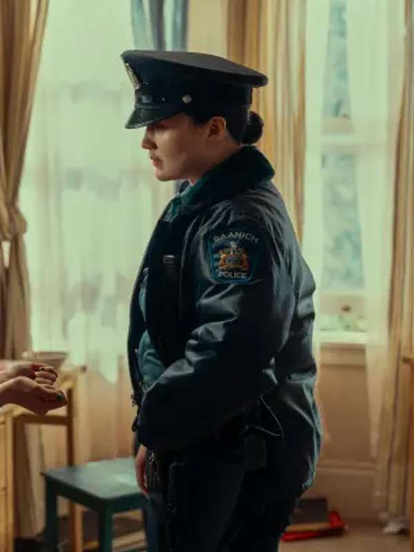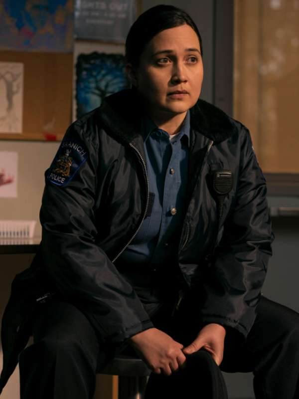 Lily Gladstone Under the Bridge 2024 Cam Bentland Black Shearling Jacket