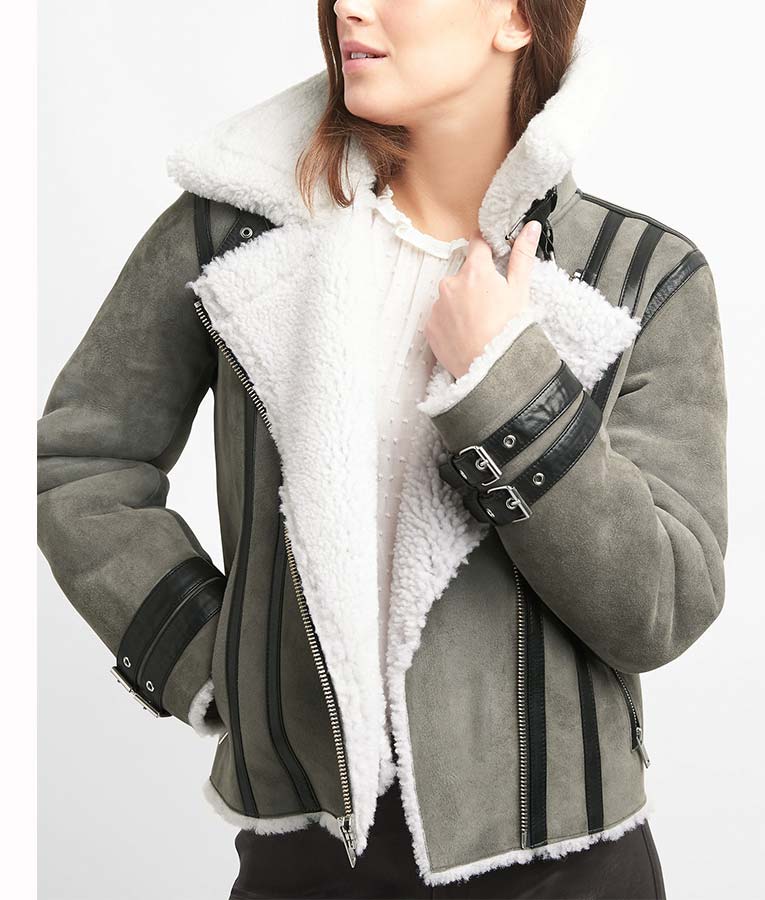 Rev up your winter style with the "Grey Suede Leather Shearling Motorcycle Jacket." This jacket is a perfect fusion of rugged edge and luxurious comfort, seamlessly combining the sleek texture of grey suede with the warmth of shearling. Meticulously crafted, the motorcycle jacket features a stylish grey suede exterior that exudes modern sophistication. The shearling lining adds both insulation and a touch of opulence, making it a standout piece for any winter occasion. The tailored fit and high-quality materials ensure both comfort and durability. Whether you're hitting the streets or attending a casual event, the "Grey Suede Leather Shearling Motorcycle Jacket" effortlessly blends fashion with an adventurous spirit. Make a statement with this iconic and stylish jacket that captures the essence of contemporary winter fashion. Make your mark with this distinctive grey suede shearling motorcycle jacket, celebrating the fusion of rugged style and luxurious comfort. Step into the season with flair and confidence, showcasing your love for individuality and style with the Grey Suede Leather Shearling Motorcycle Jacket.Specifications: