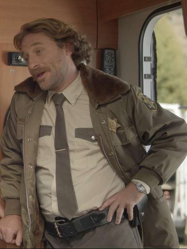 Inspired by Dean O’Gorman in Under the Vines, this stylish green bomber jacket combines classic and contemporary elements. Made from high-quality fabric, it features a luxurious shearling collar that adds both warmth and style.