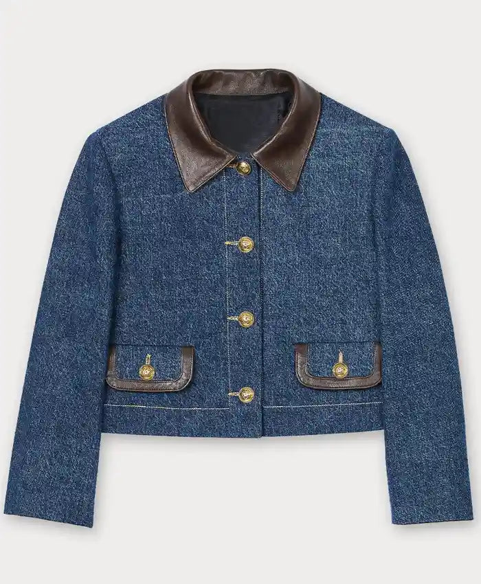 Make a bold fashion statement with the blue denim jacket inspired by Colby Muhammad’s character Kat Richardson in *Beyond the Gates* Season 1. This versatile jacket features durable denim fabric paired with a unique shirt-style leather collar for added edge. Its comfortable viscose lining, full-length sleeves, and buttoned front closure create a classic yet contemporary look that fits seamlessly into any wardrobe.