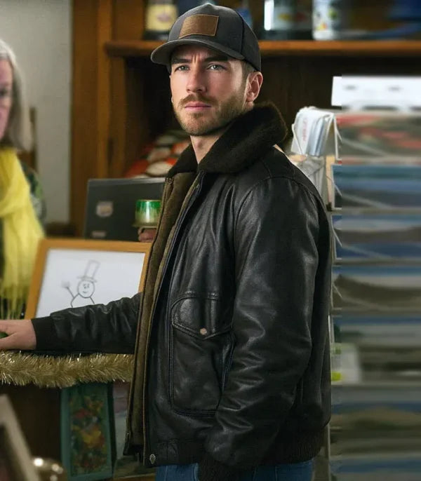 A Cherry Pie Christmas 2025 Mitch Henriksen Black Shearling Leather Jacket