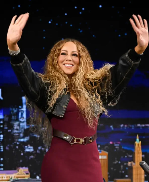 The Tonight Show 2025 Mariah Carey Black Cropped Leather Jacket