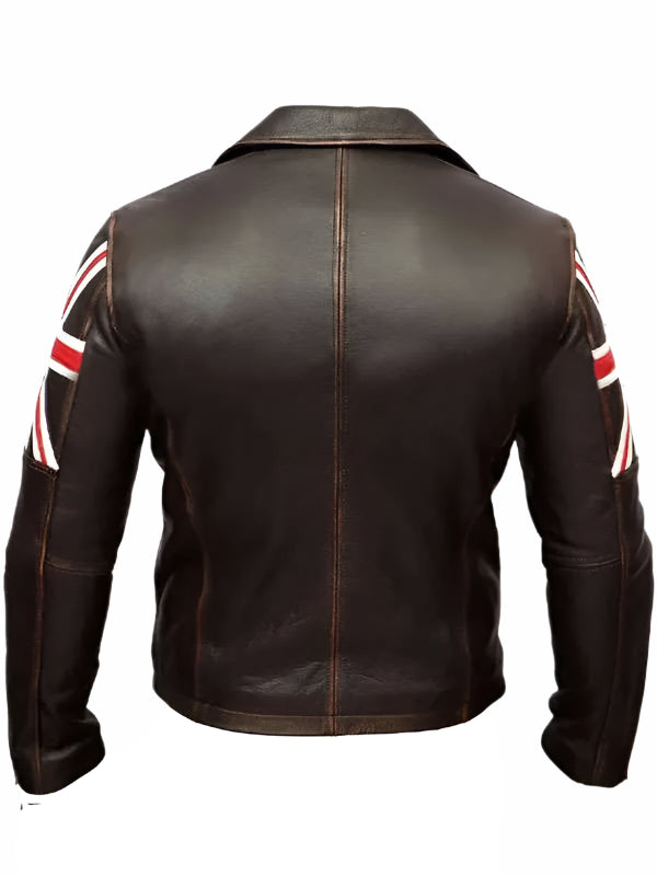 Vintage Brown British Flag Leather Motorcycle Jacket