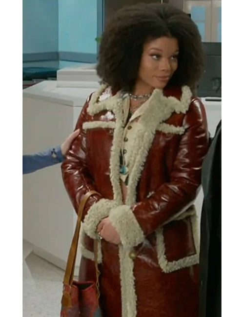 Eva Thomas Beyond The Gates 2025 Ambyr Michelle Brown Leather Coat