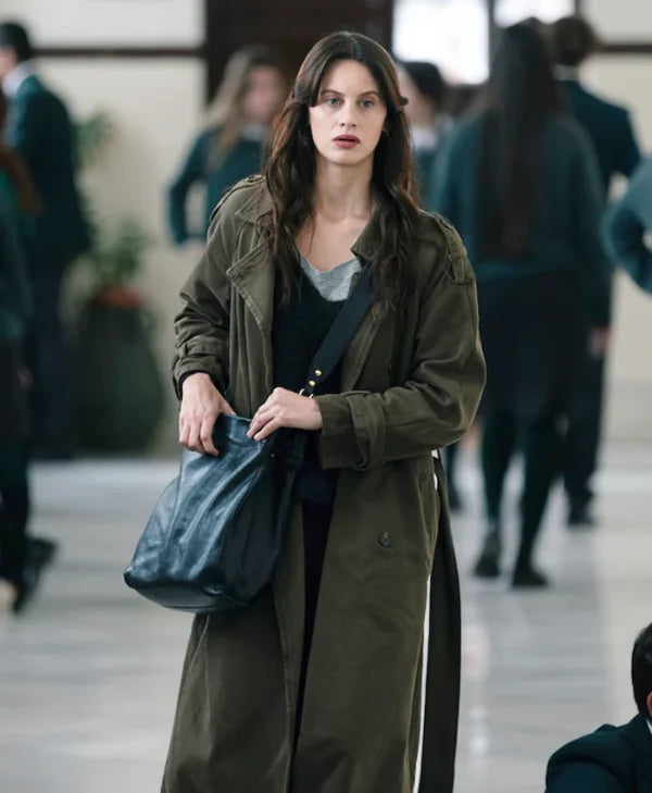 Embrace quiet strength and investigative style with the Milena Smit TV-Series The Snow Girl 2025 Miren Rojo Green Trench Coat by Edison Jacket. Inspired by Milena Smit’s compelling portrayal of Miren Rojo in the gripping thriller The Snow Girl, this coat reflects the sharp intellect and relentless determination of a character caught between truth and trauma.