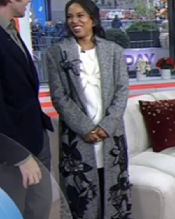 The Today Show Kerry Washington Grey And Black Floral Coat