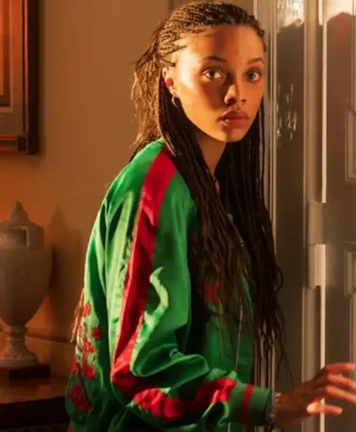 The Iris Affair S01 Meréana Tomlinson Green Satin Bomber Jacket