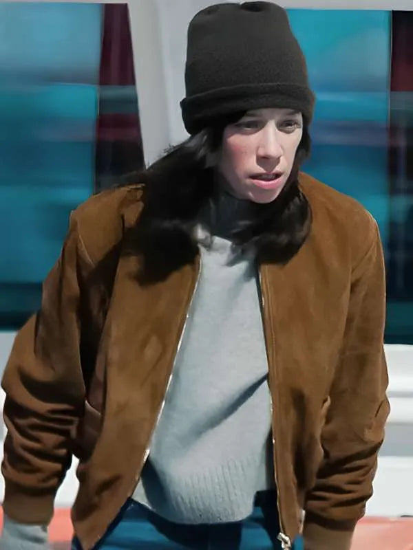 Dept. Q 2025 Chloe Pirrie Brown Suede Leather Jacket
