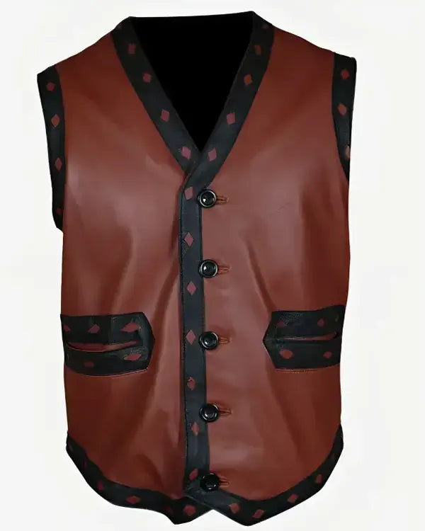 The Warriors Brown Leather Vest For Men and Women Product Specifications: Material: Real Leather Inner: Viscose Lining Pockets: Two Side, Two Inner Collar: Collarless Closure: Buttoned Color: Brown