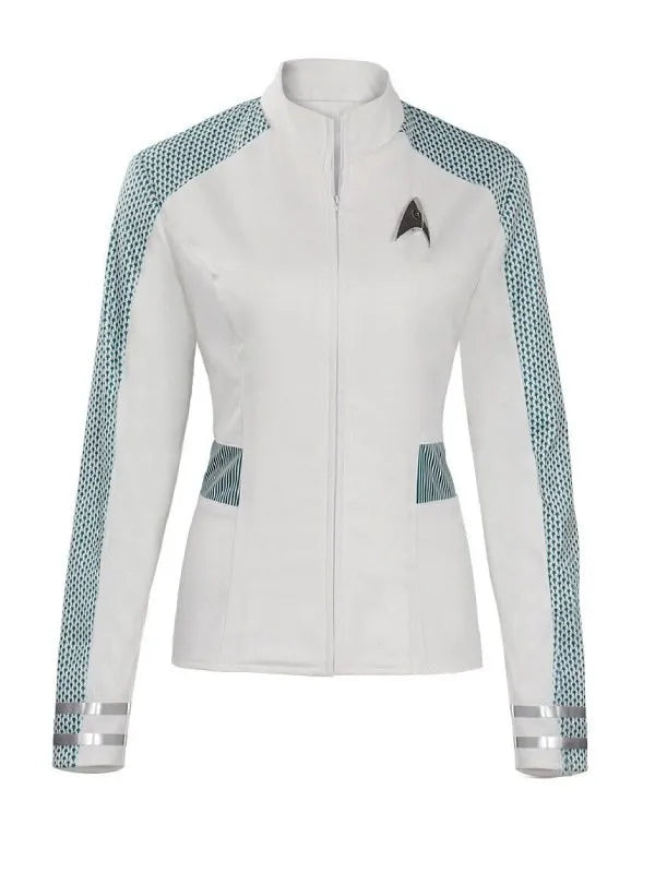 Elevate your style with the Star Trek: Strange New Worlds Season 2 Christine Chapel White Jacket. Inspired by the iconic character, this jacket is a perfect blend of futuristic charm and contemporary flair. Crafted with precision, the white jacket is made from high-quality materials, ensuring both durability and comfort. The sleek design, featuring unique detailing and a tailored fit, reflects Christine Chapel's character-inspired sense of modern fashion in the Edison Jacket. Whether you're exploring new worlds or making a bold statement in everyday life, this jacket is the epitome of versatile and edgy urban fashion. Make a statement with the Star Trek: Strange New Worlds Season 2 Christine Chapel White Jacket. Elevate your wardrobe with this iconic piece that captures the essence of futuristic charm and contemporary style.
