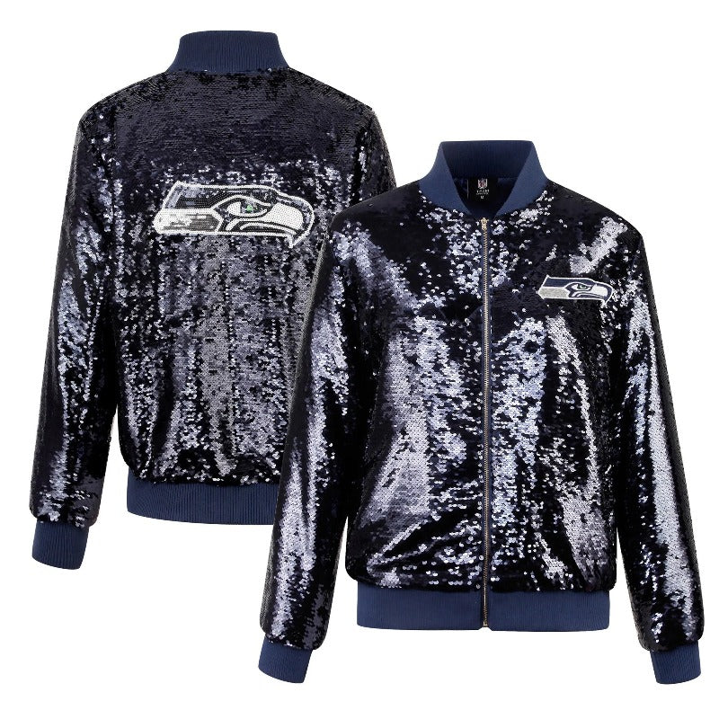 Illuminate your style with the SS Navy Sequins Jacket, a sophisticated piece that blends classic elegance with modern sparkle. This jacket features deep navy sequins that shimmer with every movement, creating a striking visual effect. The classic bomber design includes ribbed cuffs, collar, and hem, providing a comfortable and flattering fit. A front zip closure ensures practicality, while the soft inner lining offers all-day comfort. Perfect for formal events, night outs, or adding a touch of luxury to your everyday wardrobe, the SS Navy Sequins Jacket pairs effortlessly with jeans, skirts, or dresses. Make a bold statement and shine with confidence in this must-have jacket.