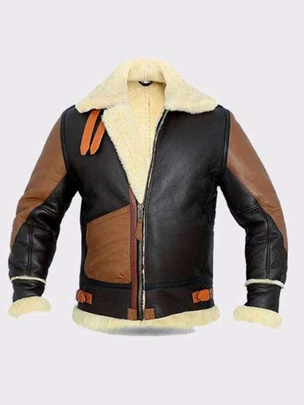 Men B3 Aviator Shearling Bomber Leather Jacket