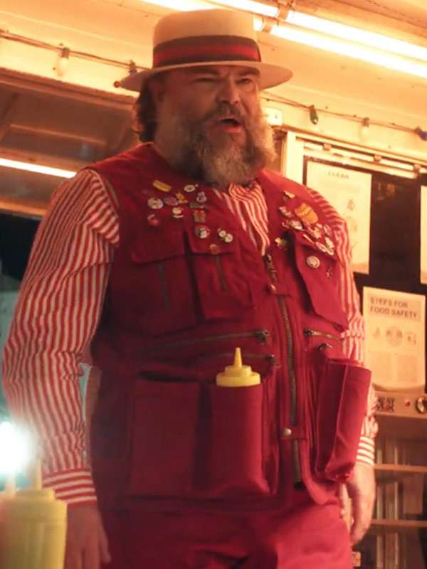 Inspired by Jack Black in *Dear Santa* 2024, this red Christmas vest features multiple front pockets, a zipper closure, and a sleek, festive design. Perfect for adding a dash of holiday spirit without the extra decorations.