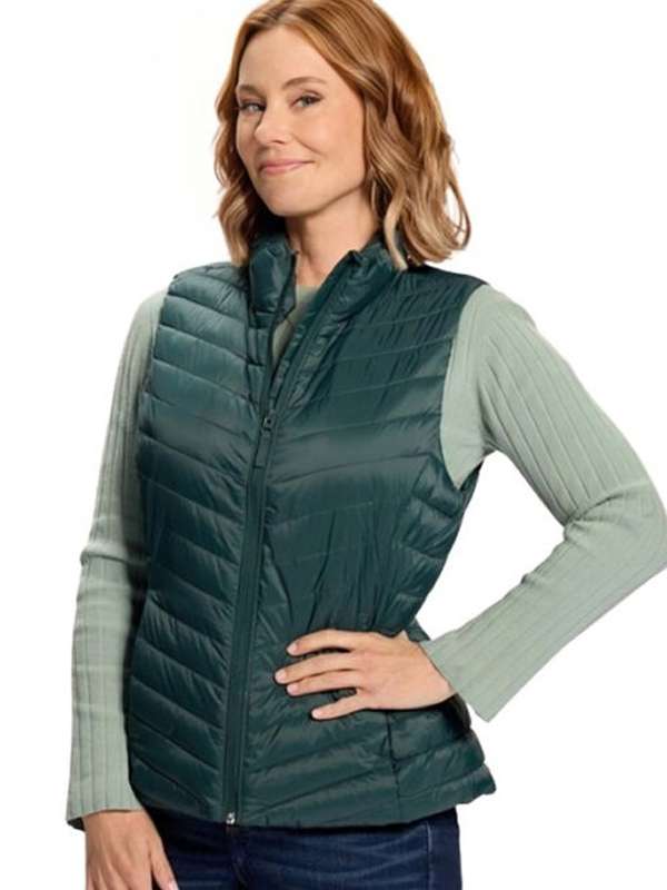 Get into the festive spirit with the Ashley Williams Avery Green Quilted Vest from the 2024 movie "Jingle Bell Run." This stylish vest, inspired by Ashley Williams’ character, is made from high-quality parachute fabric, offering a lightweight yet durable option for layering. The vest features a convenient zipper closure and a stand-up collar, providing a snug and cozy fit. With its eye-catching green color and practical pockets, including two at the front and one inside, this vest is both fashionable and functional, making it a perfect addition to your winter wardrobe.