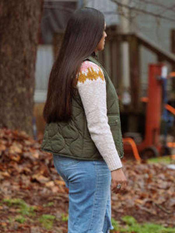 Inspired by Briza Covarrubias in Found S01, this green quilted vest offers both style and functionality. Crafted from durable polyester fabric with a soft viscose lining, it’s designed for comfort and practicality.