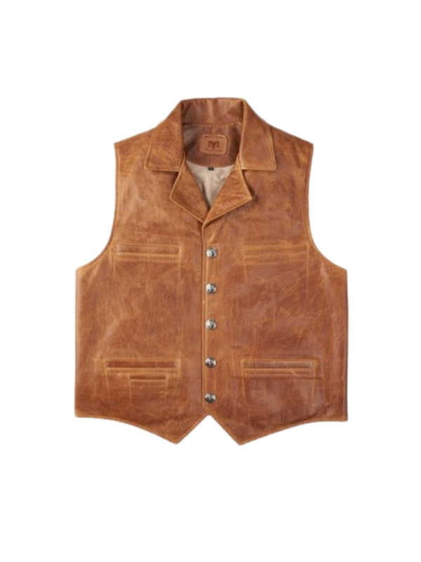 Mens Cowboy Brown Cuban Collar Leather Vest