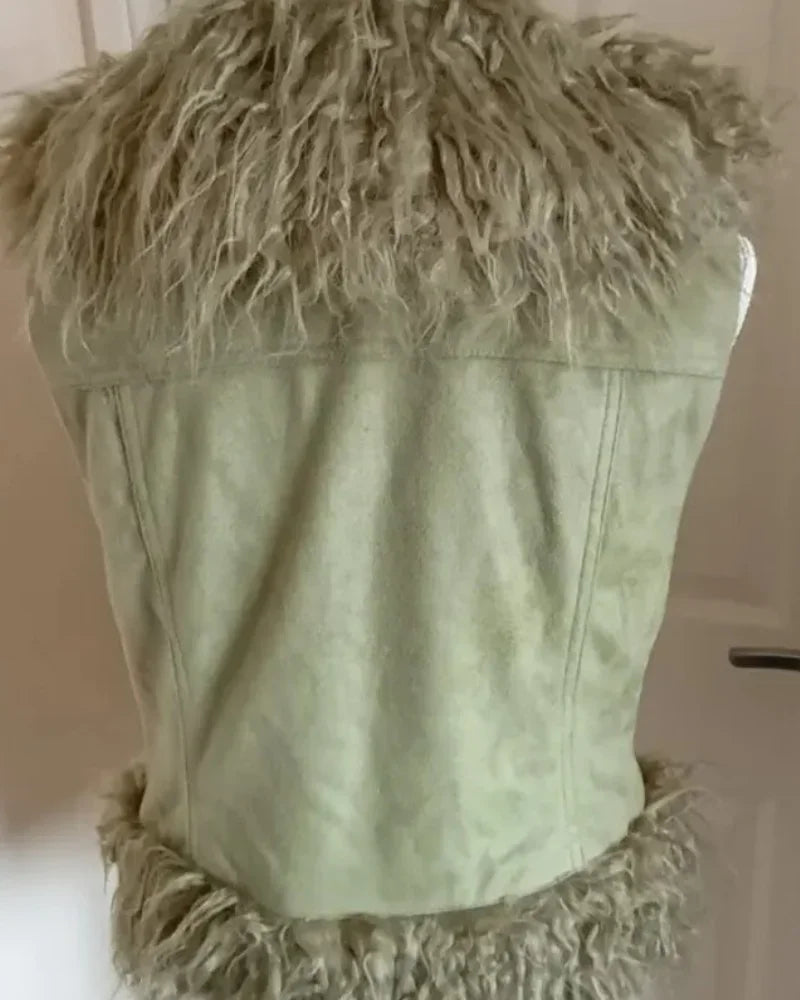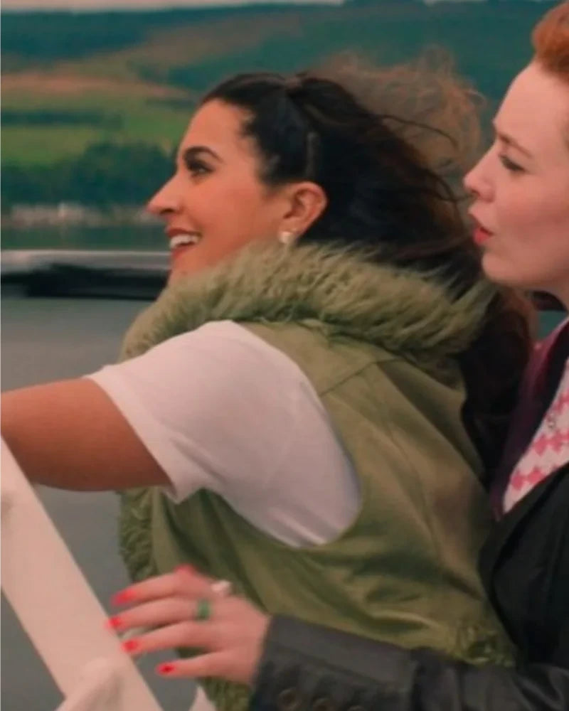 Amber TV Series Dinosaur 2024 Sabrina Sandhu Green Faux Fur Leather Vest