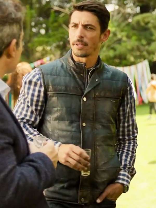 Channel the iconic style of Alberto Guerra with the El Charro Mejia Black Leather Vest from "The Accident." Made from genuine leather, this vest features a sleek design with both zipper and buttoned closures, ensuring both style and security. Its stand-up collar and multiple pockets make it a practical addition to any wardrobe.