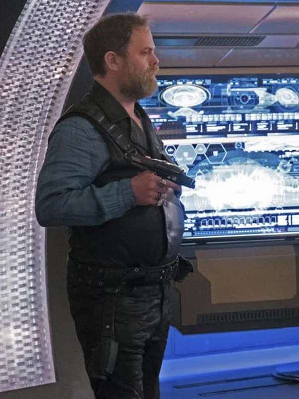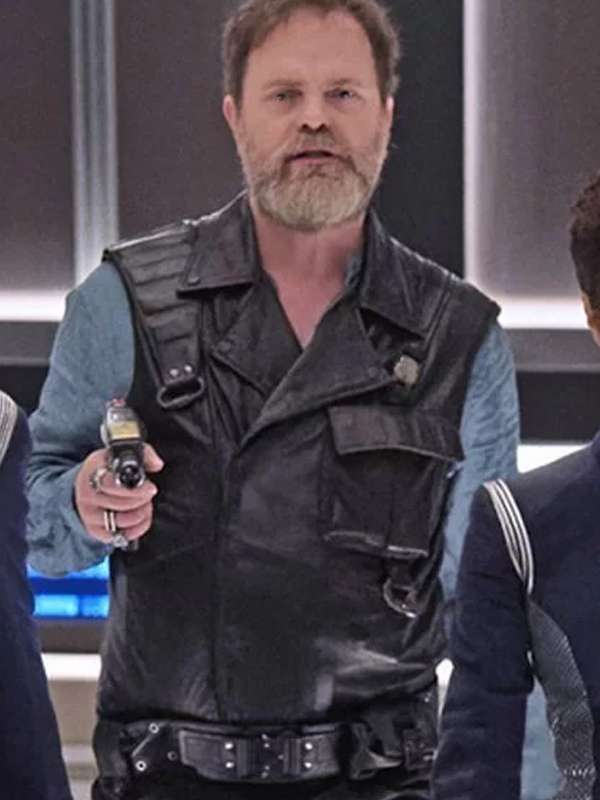 Inspired by Rainn Wilson's portrayal of Harry Mudd in Star Trek Discovery Season 1, this black leather vest brings a rugged and stylish touch to your wardrobe. Made from premium real leather with a soft viscose lining, the vest offers a comfortable fit. It features a classic lapel collar and a buttoned closure for a timeless look. With one front pocket and two inner pockets, it's both practical and fashionable—perfect for any Star Trek fan.