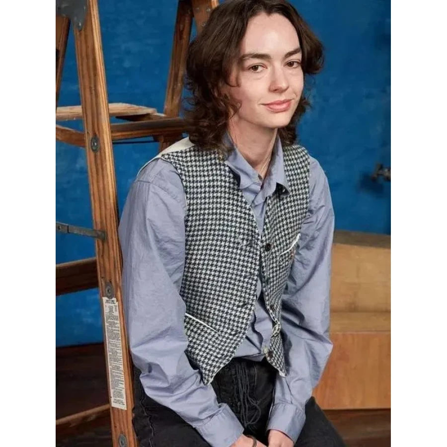 Make a bold fashion statement with the "I Saw the TV Glow Brigette Lundy-Paine Houndstooth Vest." Inspired by Brigette Lundy-Paine's distinctive and eclectic style, this vest combines classic houndstooth patterning with a modern twist, creating a unique and eye-catching piece. Crafted from high-quality materials, it offers both durability and comfort, ensuring you look stylish and feel confident. The black-and-white houndstooth design adds a touch of sophistication, while the tailored fit flatters your silhouette. The "I Saw the TV Glow Brigette Lundy-Paine Houndstooth Vest" features thoughtful details such as a V-neckline, button closure, and subtle side pockets, enhancing its chic appeal. Its versatile design makes it perfect for layering over shirts, blouses, or even dresses, making it suitable for both casual and formal occasions. Pair it with tailored trousers for a polished look or wear it over jeans for a more laid-back, yet fashionable ensemble. Embrace the unique and fashionable spirit of Brigette Lundy-Paine with this standout houndstooth vest.Specifications: