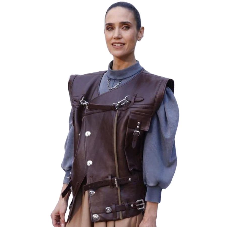 Jennifer Connelly Leather Brown Vest