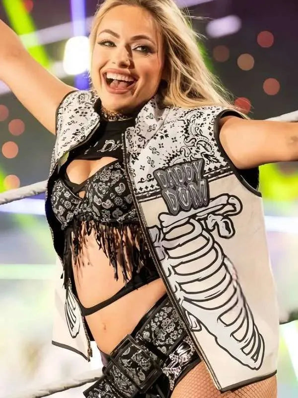 Liv Morgan Royal Rumble Daddy Dom White Leather Skeleton Vest