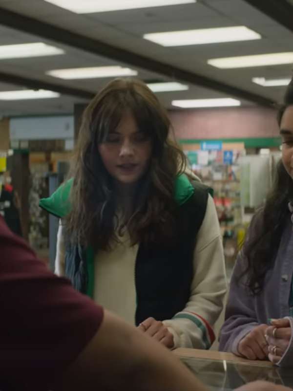 Margot Cat Person 2023 Emilia Jones Black Puffer Vest