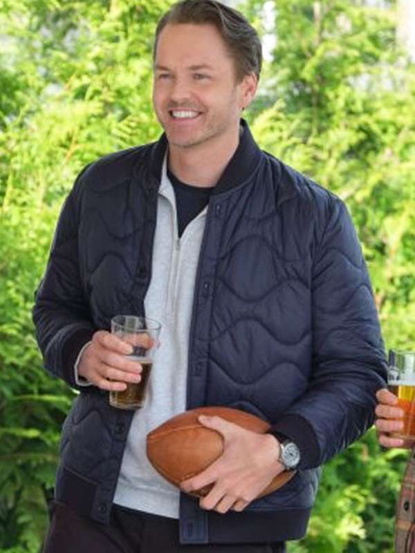 Inspired by Paul Campbell's portrayal of Mark Wallace in the 2024 movie "Falling Together," this blue quilted bomber jacket is the perfect addition to any casual wardrobe. Crafted from premium parachute fabric with a soft viscose lining, it ensures comfort while maintaining a sleek look. The jacket features a buttoned front closure, ribbed collar, and full-length sleeves with ribbed cuffs, adding a classic bomber jacket vibe. The functional pockets at the front and inside make it a practical and stylish choice for everyday wear.
