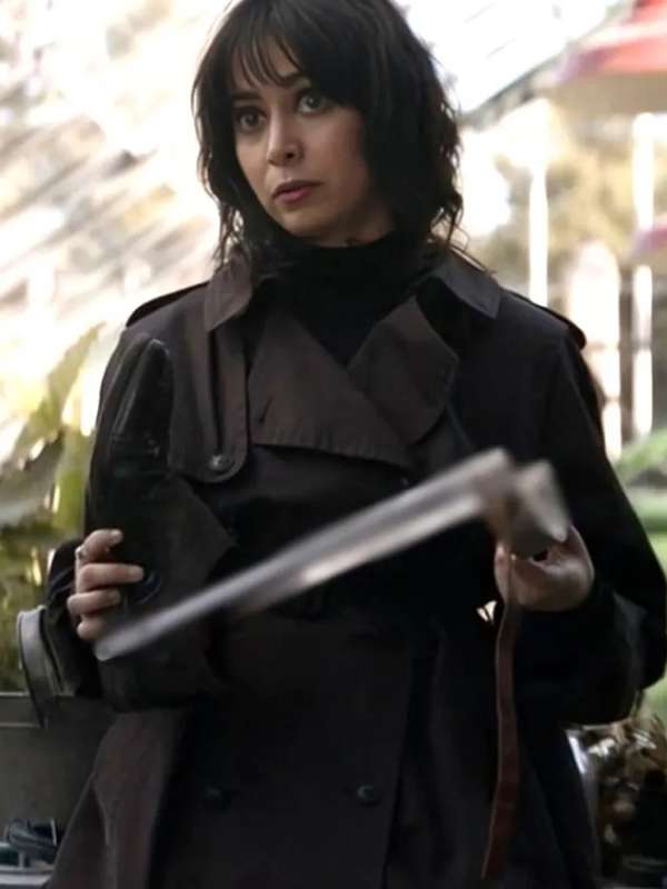 Elevate your wardrobe with The Penguin 2024 Sofia Falcone Black Cotton Coat, inspired by Cristin Milioti. This elegant coat, crafted from premium cotton fabric, features a buttoned and belted closure and a classic lapel collar. Its timeless black design and functional pockets make it the perfect addition to your winter collection.