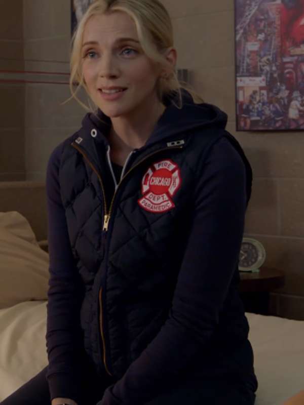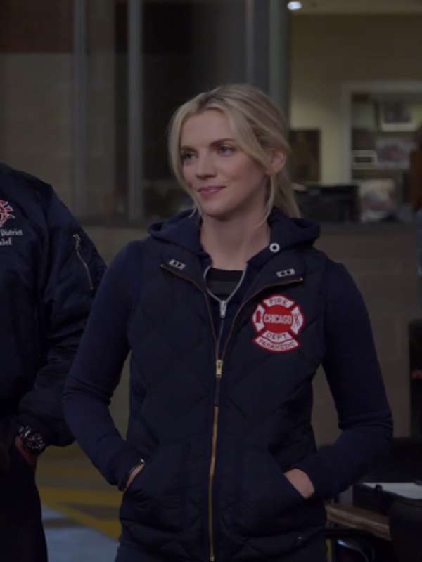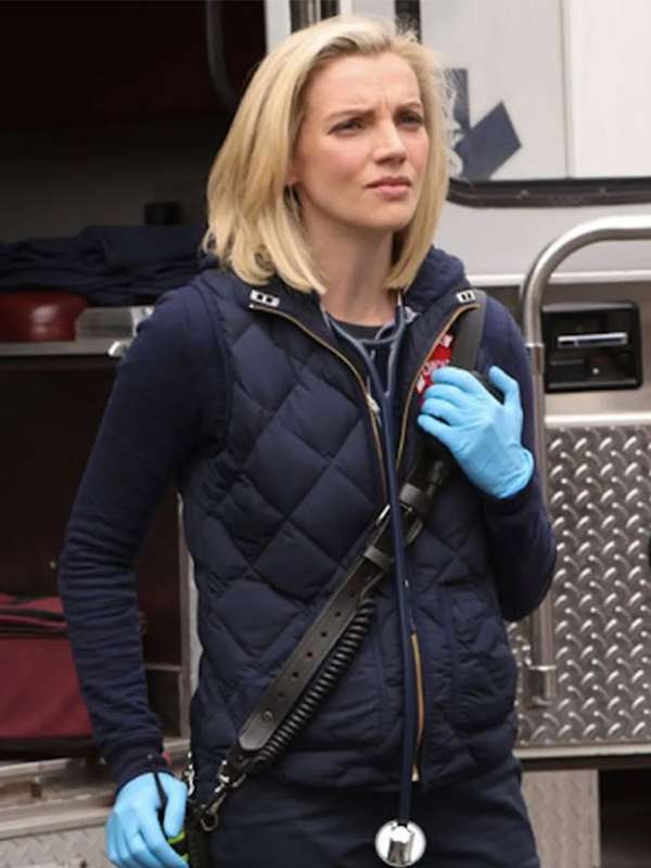 Kara Killmer Chicago Fire S12 Sylvie Brett Blue Quilted Vest