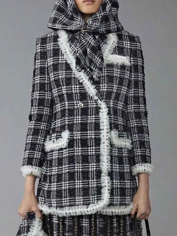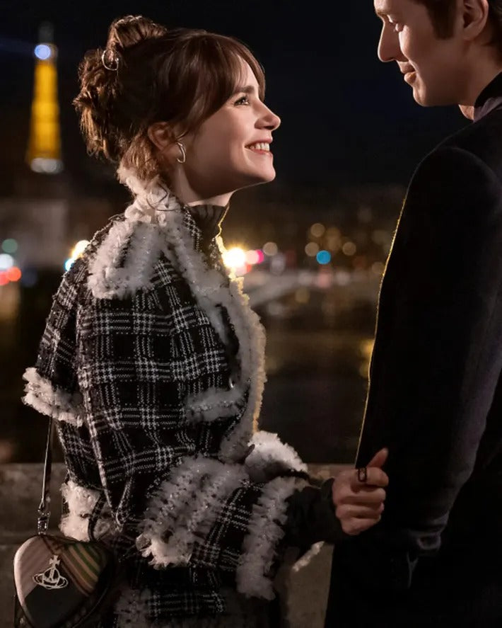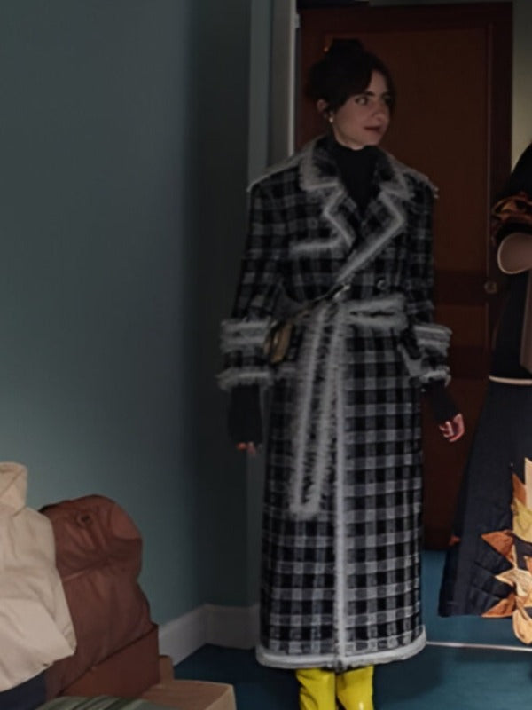 Emily Cooper Emily In Paris S04 Lily Collins Ruffled Plaid Coat