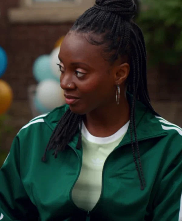 Turn heads with vibrant flair in the Tameka Griffiths TV-Series Ginny and Georgia 2025 Bracia Green Striped Jacket by Edison Jacket. Inspired by Tameka Griffiths’ standout character Bracia in Ginny and Georgia, this jacket is a true expression of individuality, confidence, and colorful charisma.
