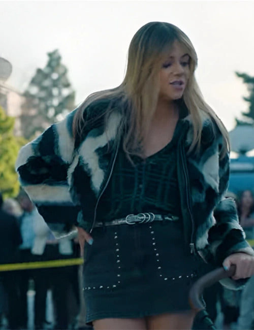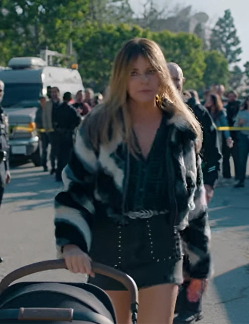 Shop the Morgan TV Series High Potential 2024 Kaitlin Olson PU Fur Jacket. Stay stylish and cozy with this multicolor PU fur jacket, featuring a shirt-style collar and YKK zipper closure.