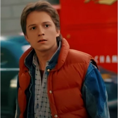 If this is related to a new project or merchandise released after January 2022, I recommend checking official movie announcements, Tom Holland's social media accounts, or reliable entertainment news sources for the latest information about Tom Holland's involvement in the "Back to the Future" series or any associated puffer vest.Specification: