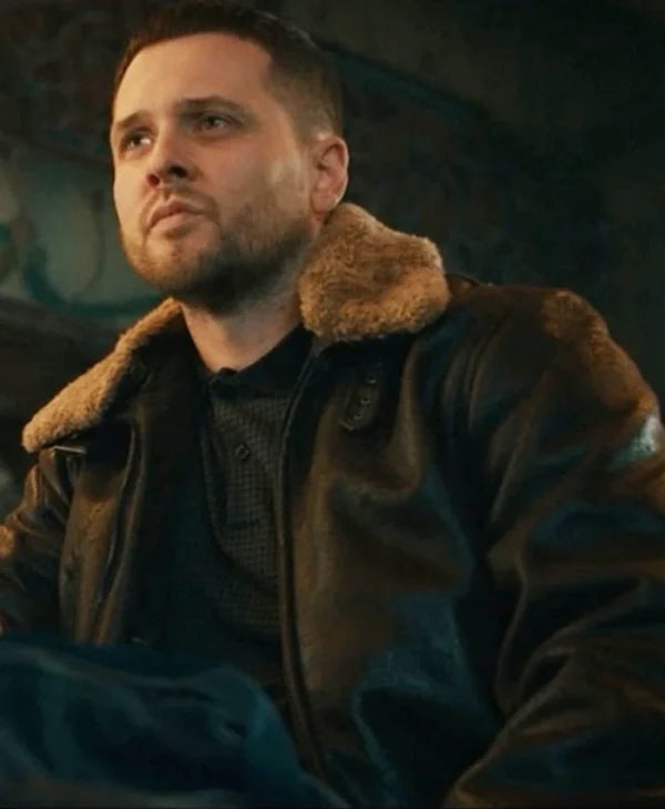 Bradley Turner MobLand Freddie Shaw Brown Leather Jacket